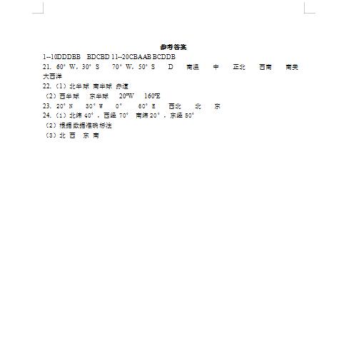 2022年人教版七上册地球与地球仪课时练习答案(下载版)