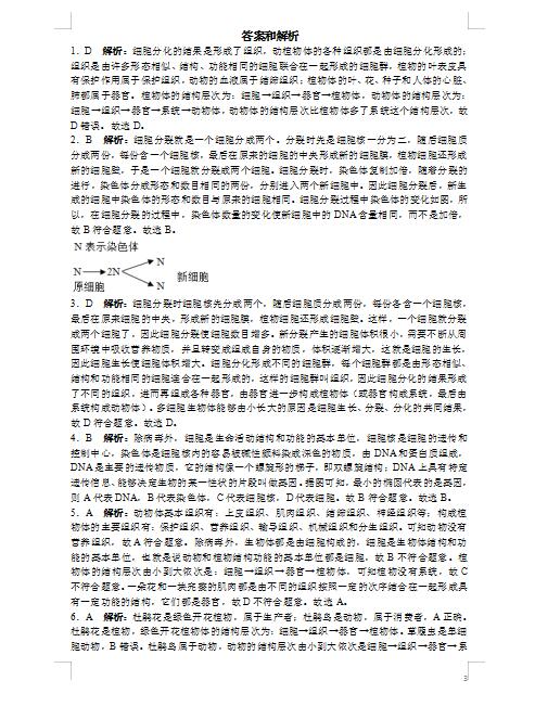 2022年人教版七上生物细胞怎样构成生物体练习题答案(下载版)