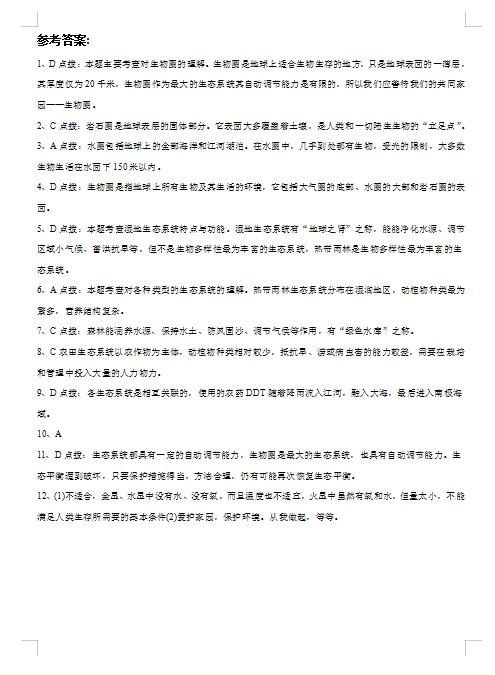 2022年人教版生物七上生物圈是最大的生态系统习题答案(下载版)