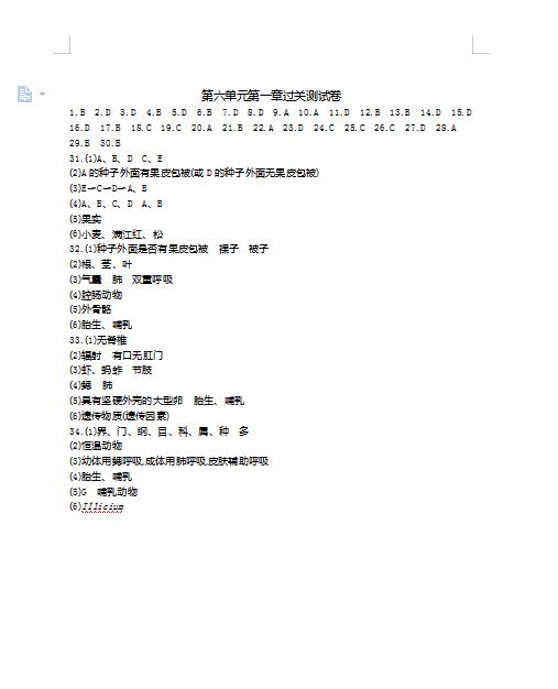 2022年初中生物保护生物的多样性练习题答案(图片版)