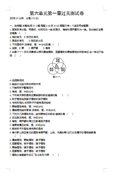 2022年人教版生物上生物的特征过关测试卷答案(图片版)