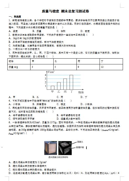 2022年人教版物理八上册质量与密度期末总复习测试卷(图片版)