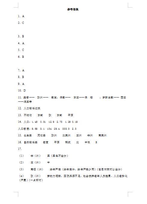 2022年七上地理人教版人口和人种 一课一练答案(下载版)