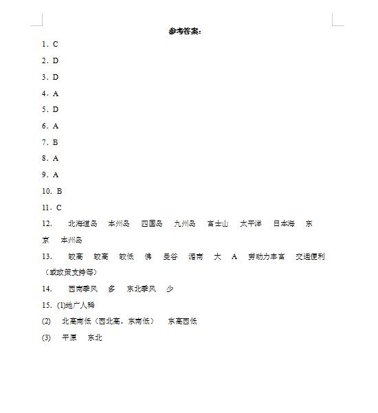 2022年七下地理人教版 我们邻近的地区和国家单元测试卷答案(图片版)