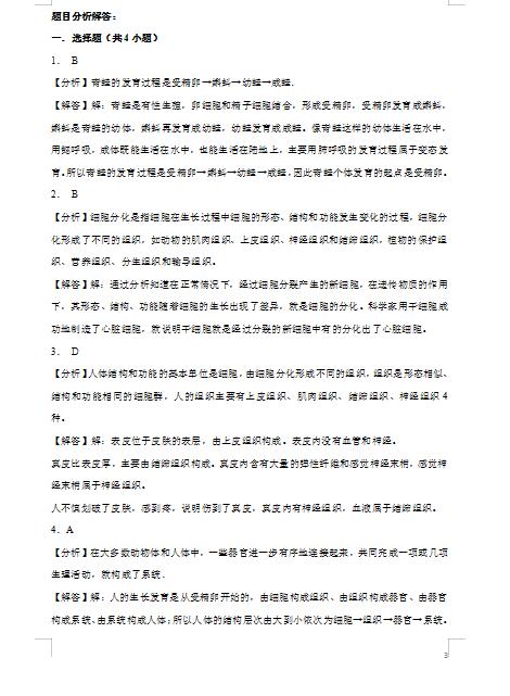 2022年生物动物体的结构层次提升练习答案(下载版)
