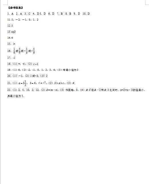 2022年数学绝对值专题练习答案(图片版)