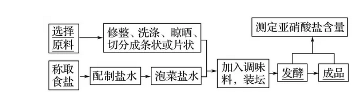 ②测定亚硝酸盐的含量:(1)NO+对氨基苯磺酸→反应物;反应物+N1萘基乙二胺盐酸盐→玫瑰红色染料。(2)亚硝酸盐溶液的浓度高,颜色深些;溶液浓度低,颜色浅些。(3)检测步骤:配制溶液→制备标准显色液→制备样品处理液→比色。