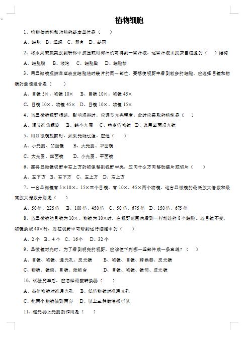 2022人教版生物七年级上植物细胞习题4(下载版)