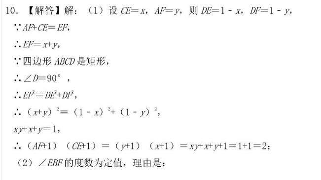 2022中考数学四边形重点练习(10)答案
