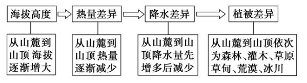 在分析垂直地域分异规律时可按以下思路进行,要特别关注海拔高度的差异。