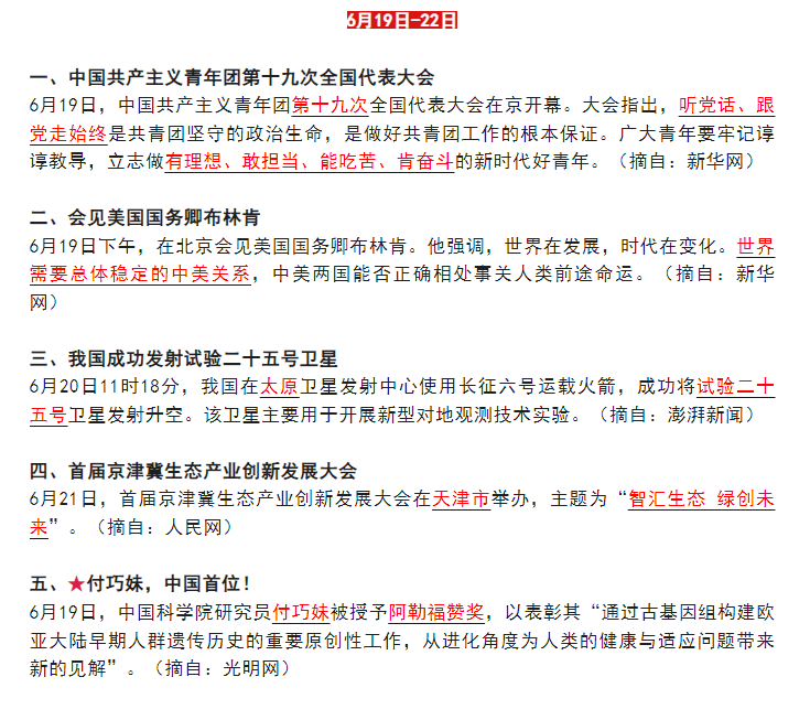2023年6月时政热点:6月19日--22日
