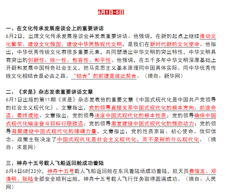 2023年6月时政热点:6月1日--5日