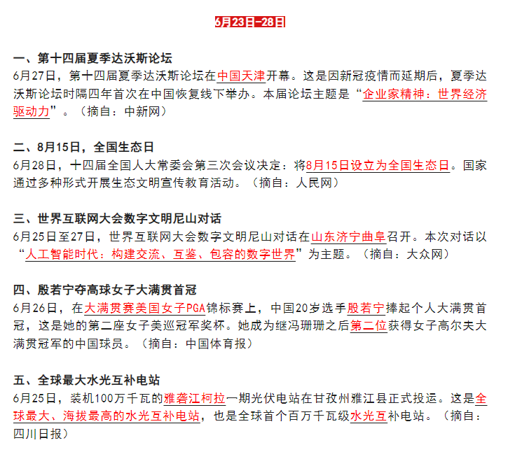 2023年6月时政热点:6月23日--28日