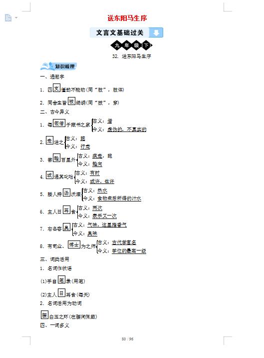 2023年部编初中语文送东阳马胜序文言文重点知识全解析