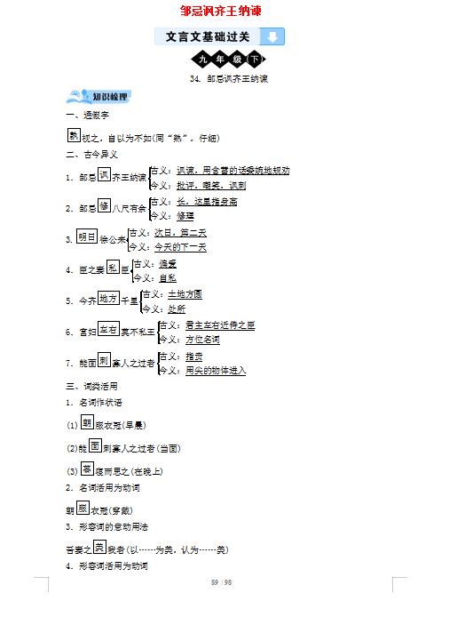 2023年部编初中语文邹忌讽齐王纳谏文言文重点知识全解析