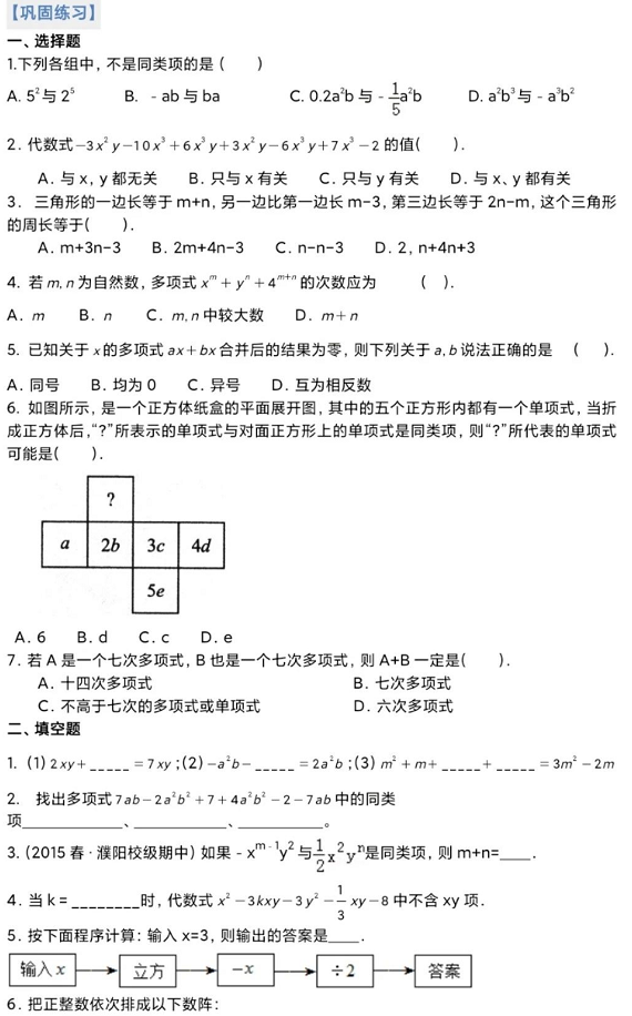 2023你操作数学整式的加减合并同类项知识点