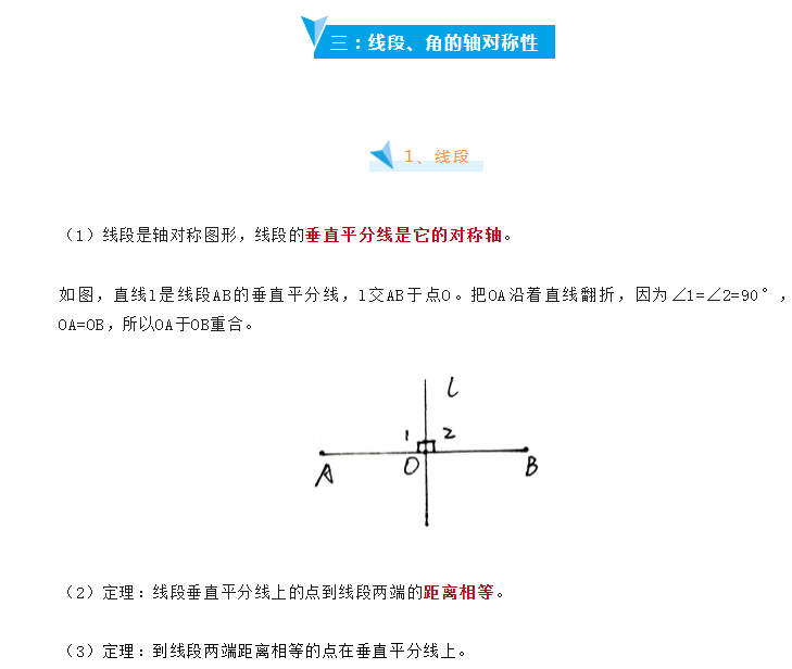 2023年初二数学轴对称图形基础知识点:线段,角的轴对称性