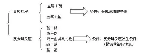 如:将酸碱盐的化学性质浓缩为下图记忆较好(图表记忆法)