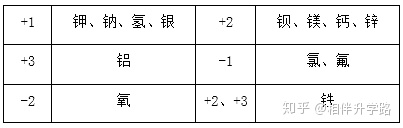 一价钾钠氢与银,二价钙镁钡与锌,三价金属元素铝;