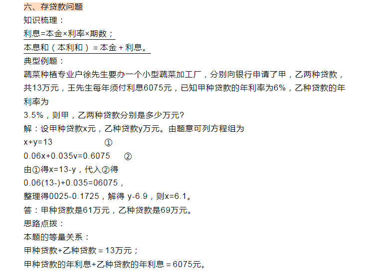 2023年初一数学二元一次方程组典型例题:存贷款问题