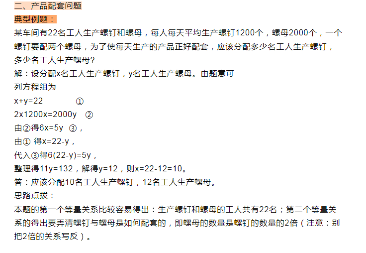 2023年初一数学二元一次方程组典型例题:产品配套问题