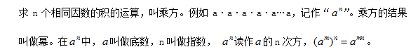 正数的任何次幂都是正数;负数的奇次幂是负数,负数的偶次幂是正数。0的任何次幂都是0。