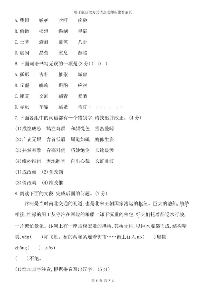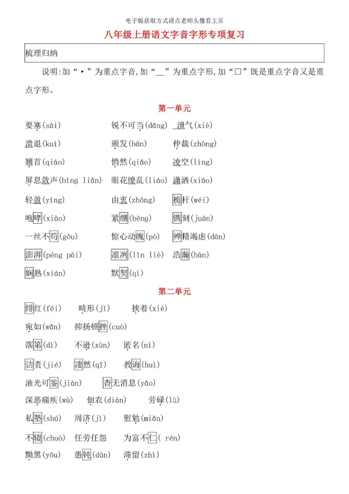 2023年初中八年级上册语文期末考试字音字形专题复习知识