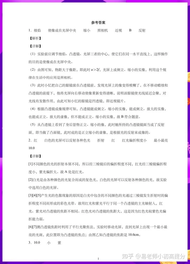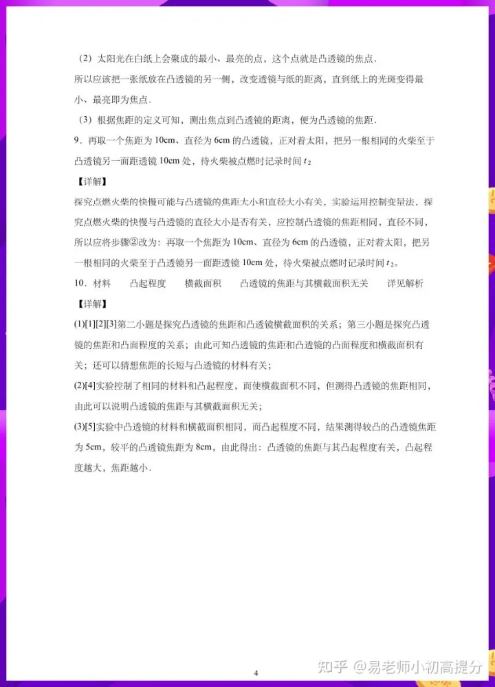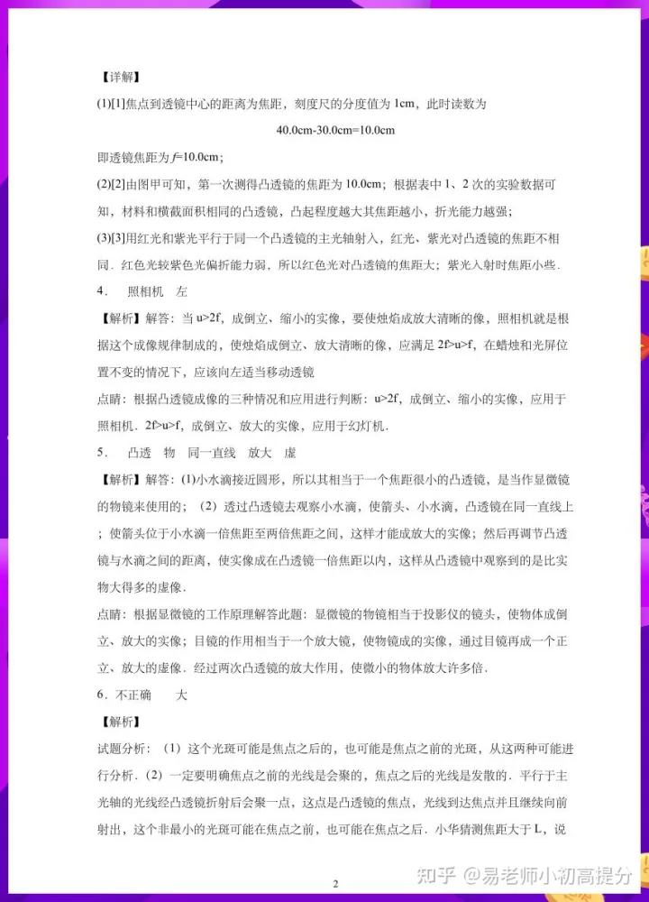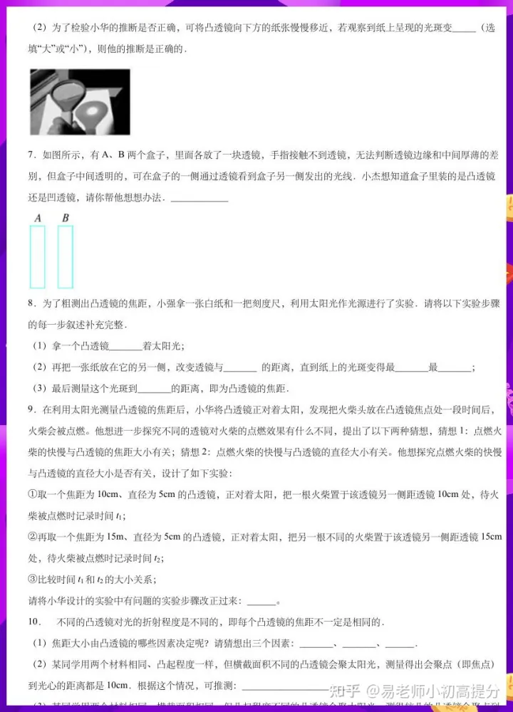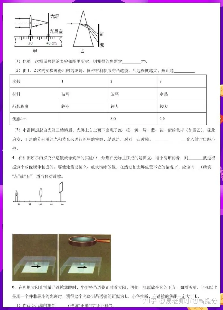2023年初中八年级物理上册凸透镜实验题专项练习
