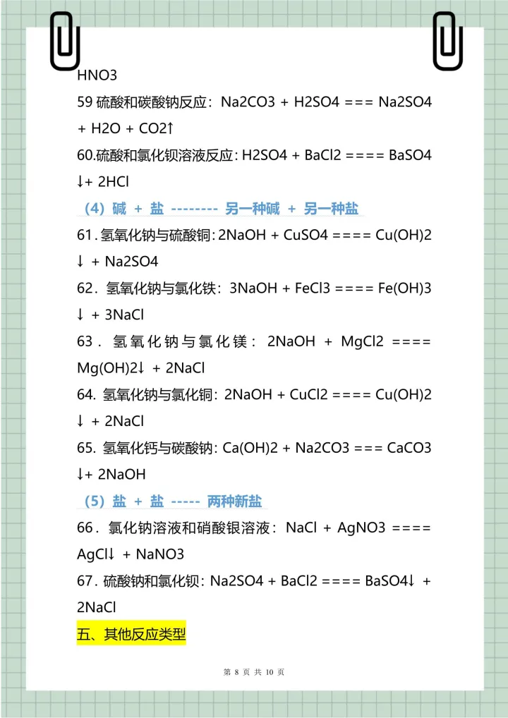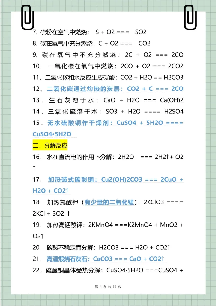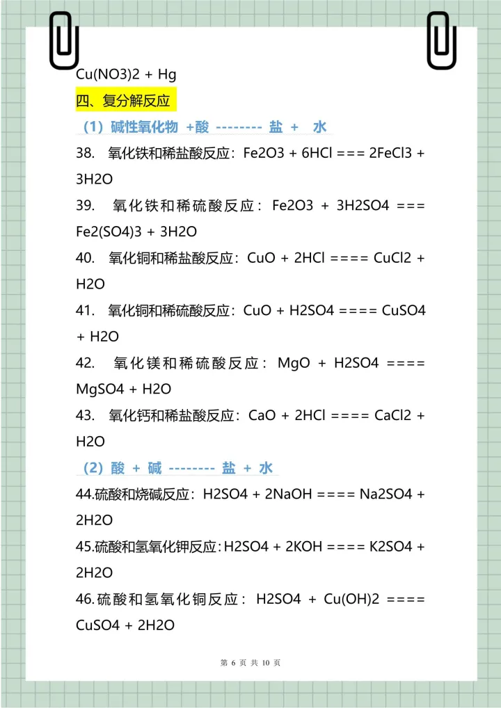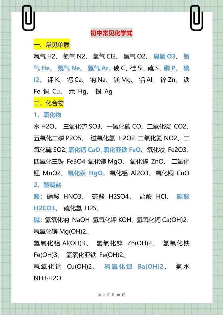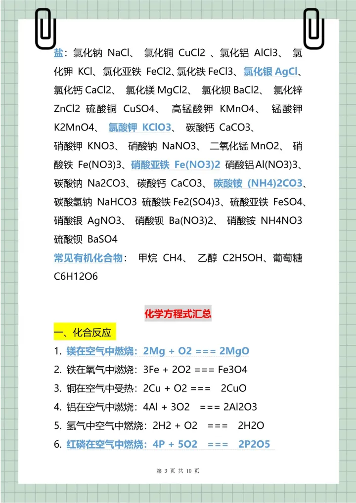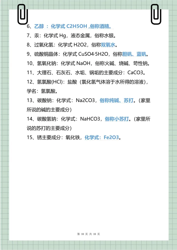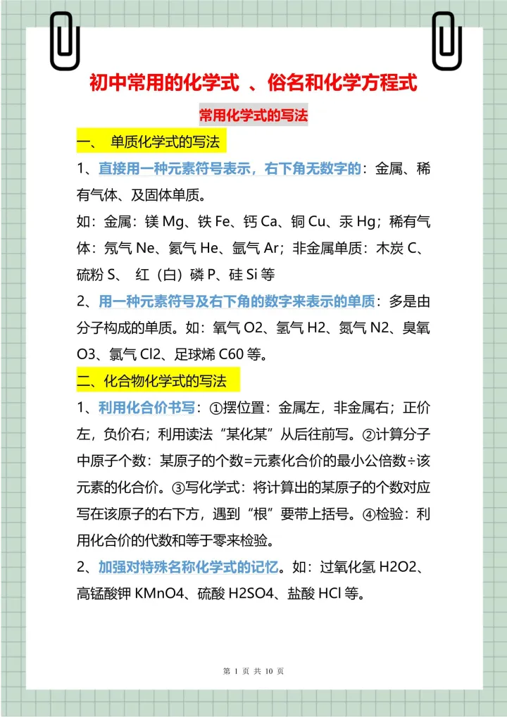 2023年初中常用的化学式、俗名和化学方程式