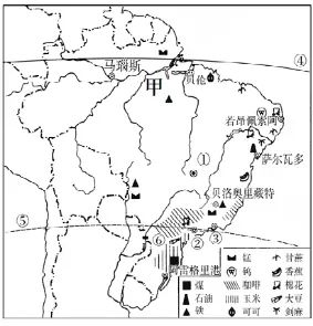 (3)①为巴西首都巴西利亚,该城市分布于巴西高原,主要为热带草原气候。