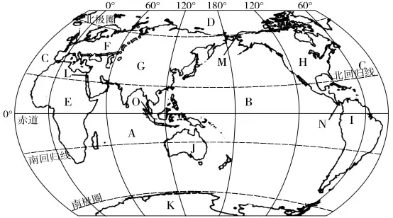 (2)大洲:E非洲,F欧洲,G亚洲,H北美洲,I南美洲,J大洋洲,K南极洲