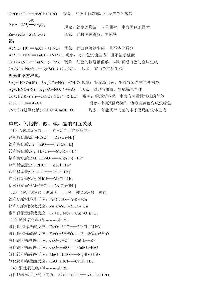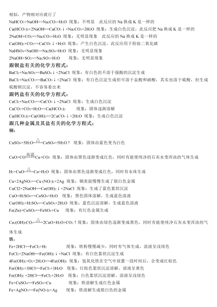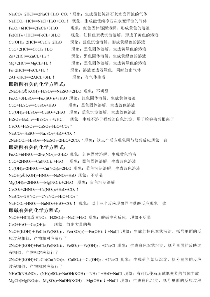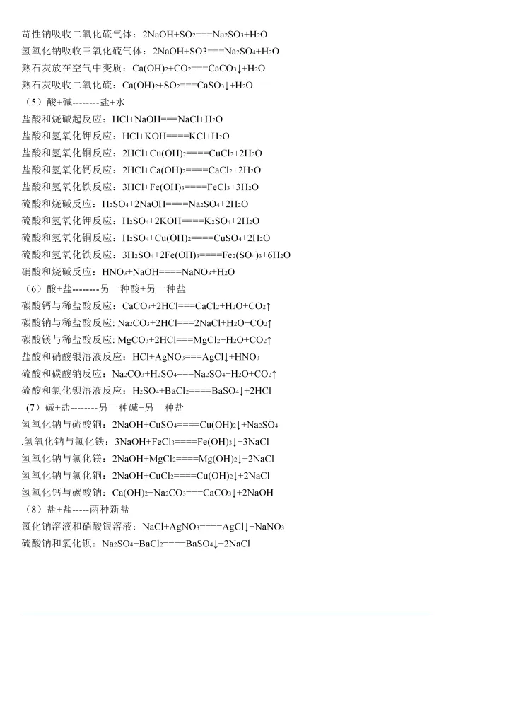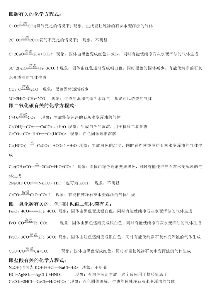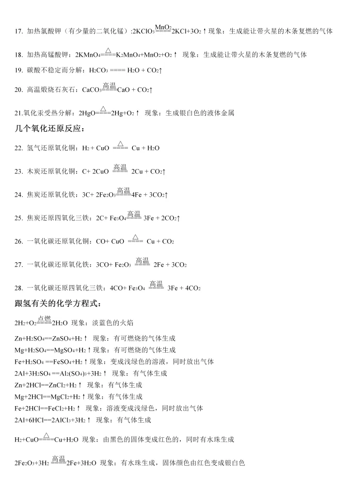 2023年初中化学必背反应方程式大全