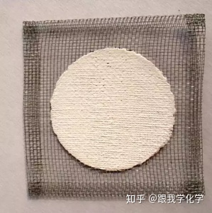 是一个四寸见方的铁丝网(起骨架支撑作用),当中涂以直径为二寸半的圆形石棉心。石棉具有耐高温、热的不良导体的特点,所以石棉网可以直接受热,常用于烧杯等受热时垫隔在火焰与玻璃容器之间,以使玻璃容器均匀受热;也常用于承接炽热的固体生成物,或将灼热的蒸发皿等放在石棉网上冷却。