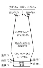 (4)冶炼过程中发生的化学反应:C+O2==点燃==CO2 CO2+C==高温==2CO 3CO+Fe2O3==高温==2Fe+3CO2CaCO3==高温===CaO+CO2↑ CaO+SiO2==高温===CaSiO3