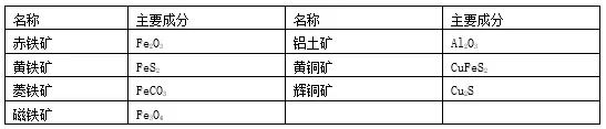 3. 常见矿石名称与其主要成分: