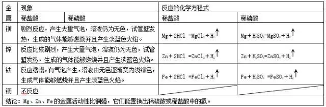 (1)在金属活动性顺序里,位于氢前面的金属能置换出盐酸、稀硫酸中的氢(不可用浓硫酸、硝酸)。
