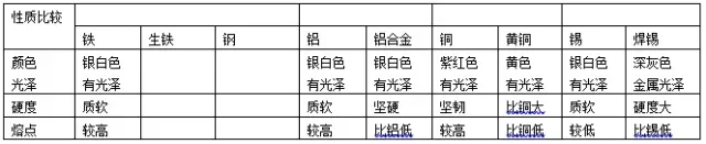 下面是黄铜和铜片,焊锡和锡,铝合金和铝线的有关性质比较: