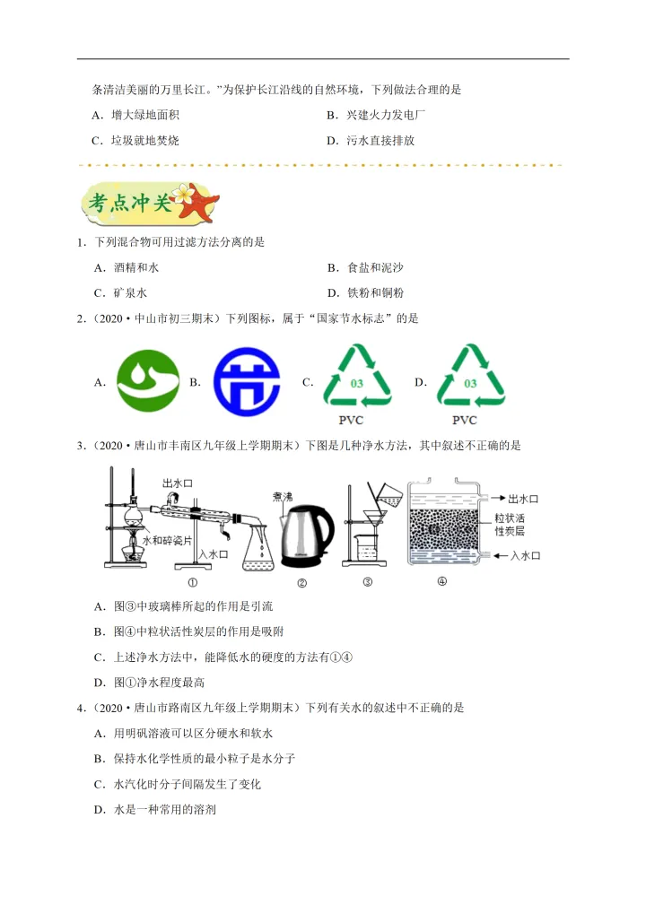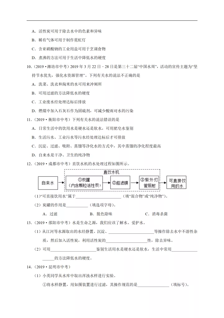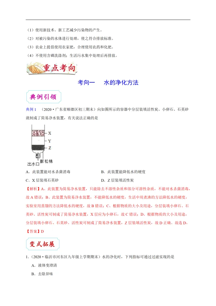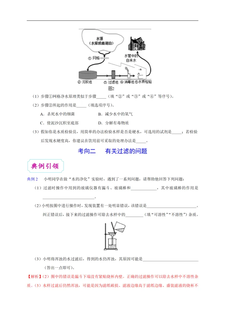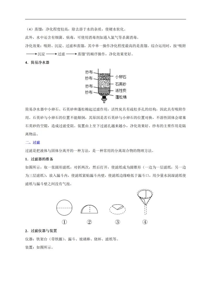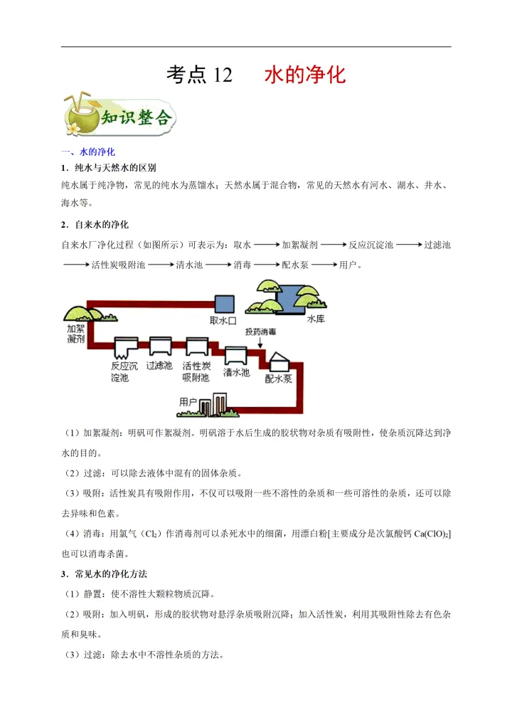2023年初中化学考点:水的净化