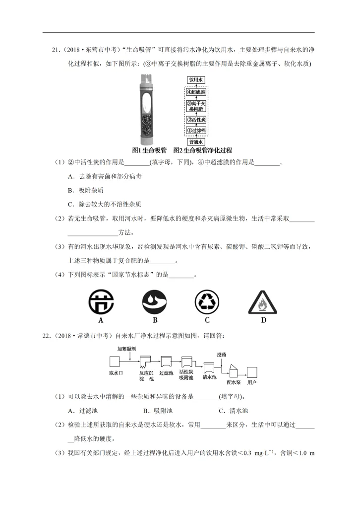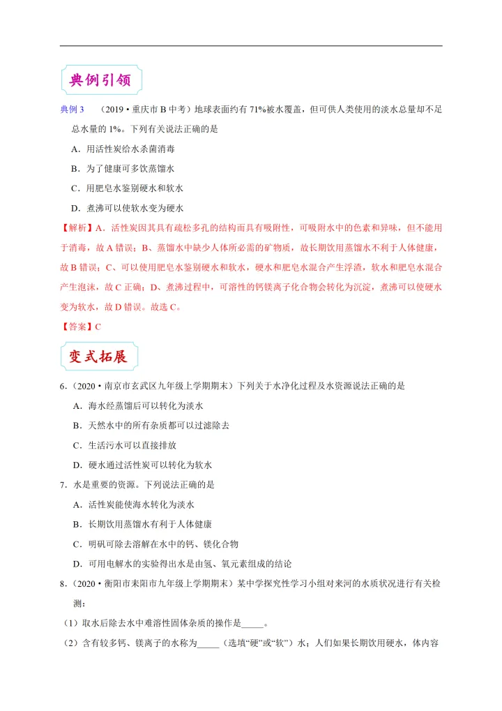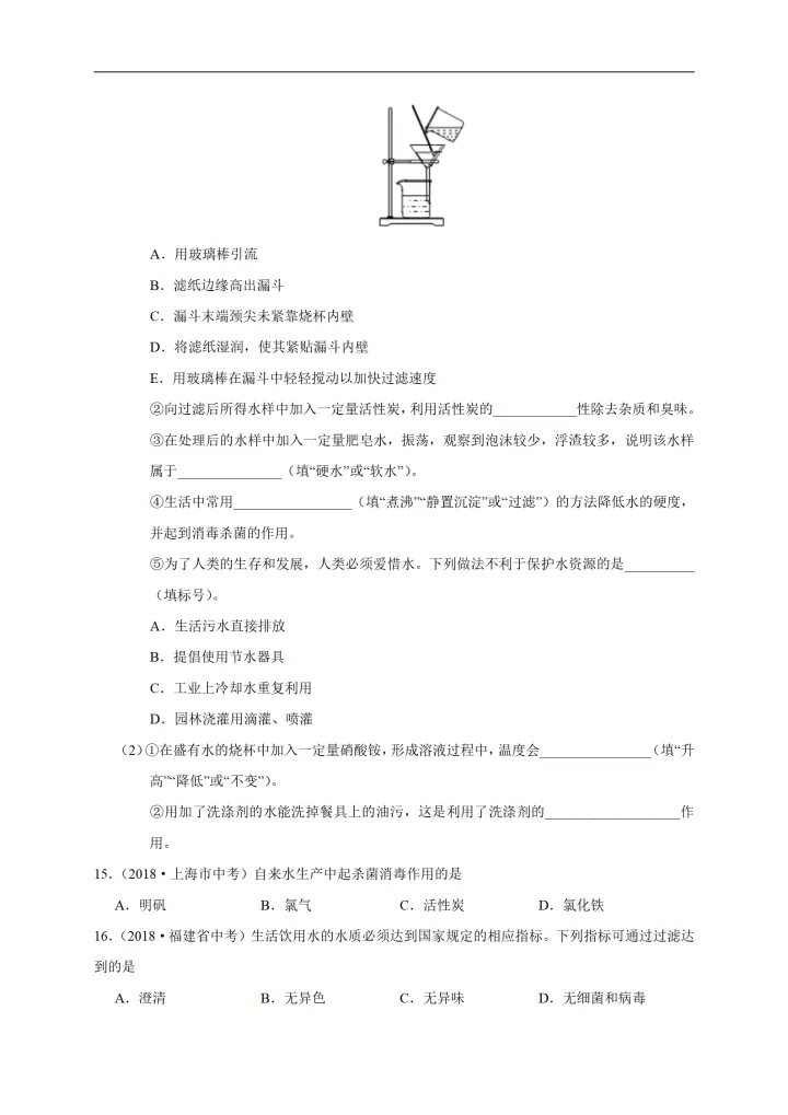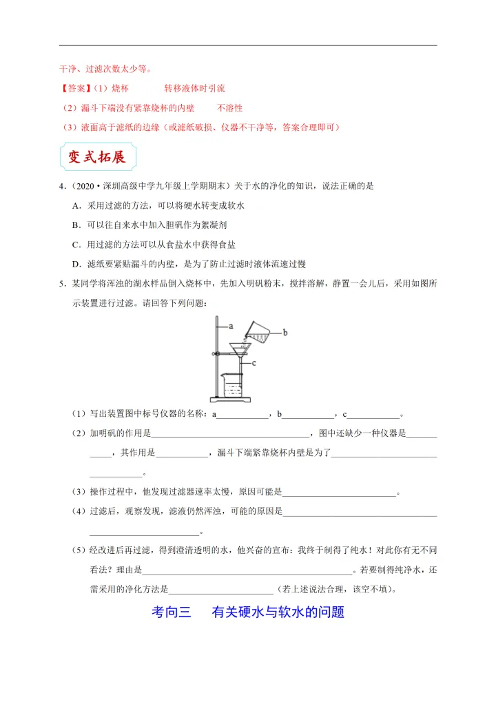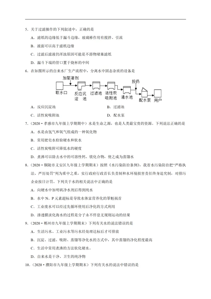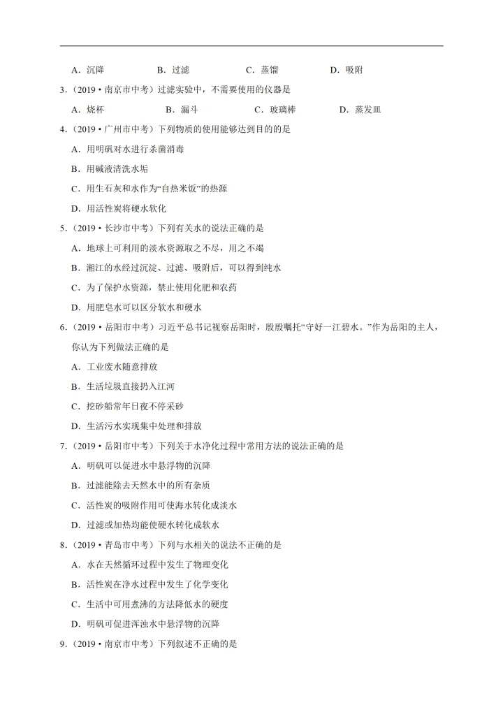 2023年初中化学考点:水的净化