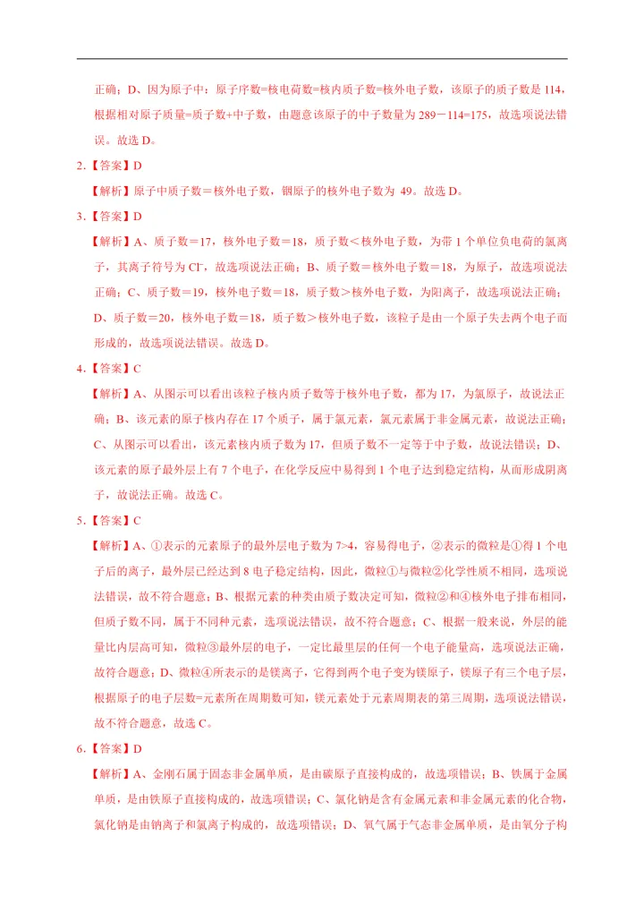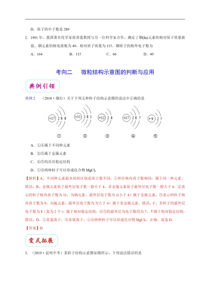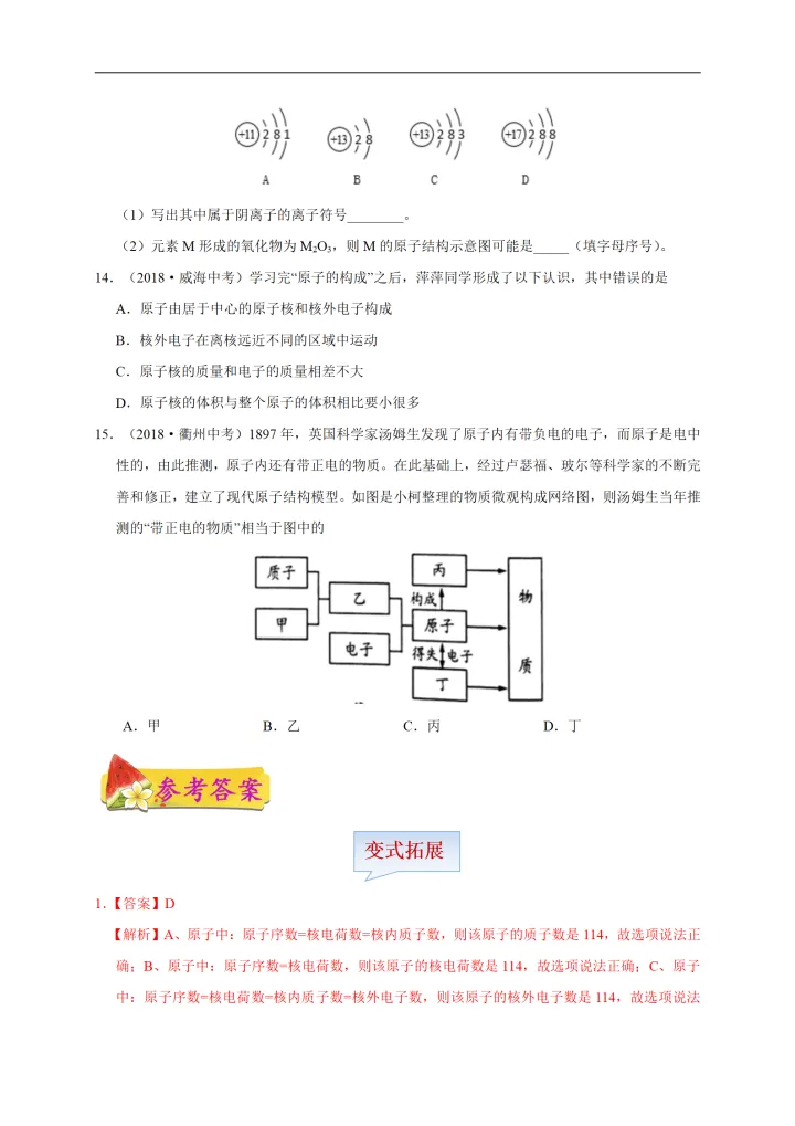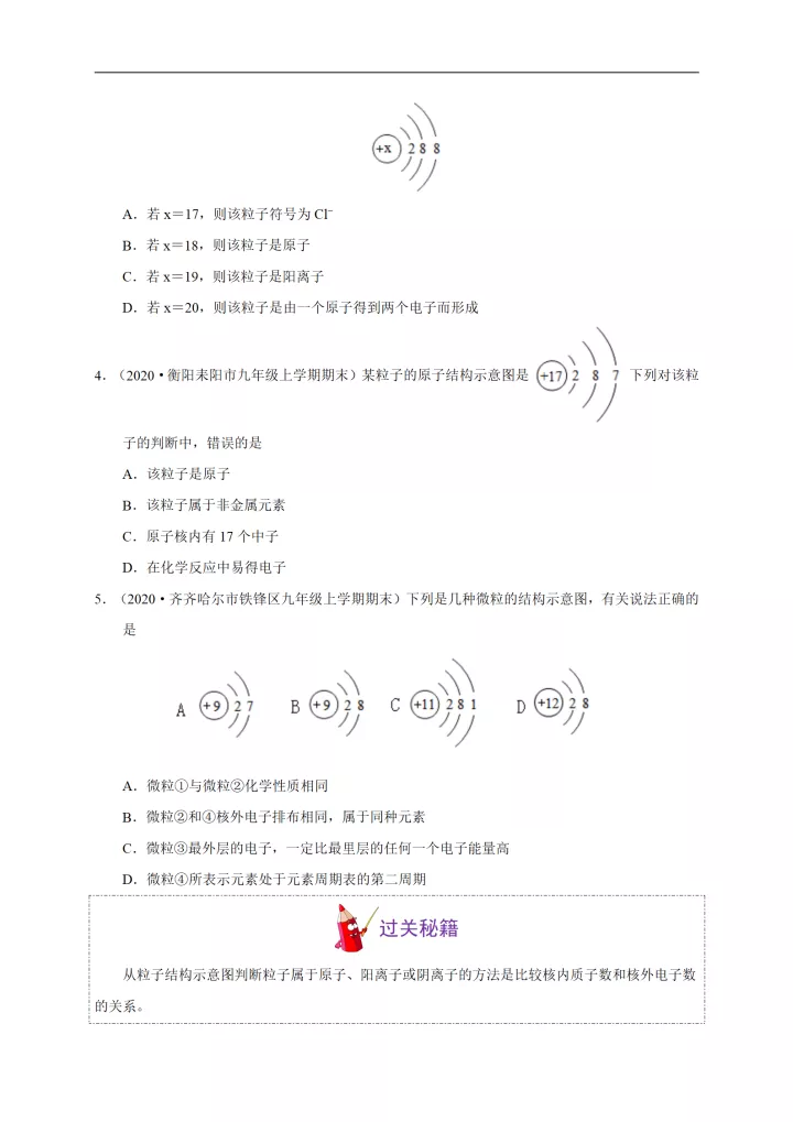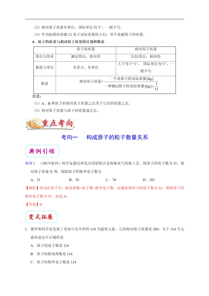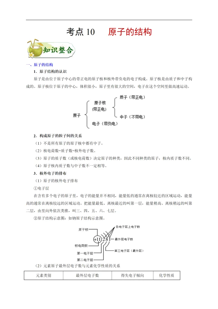 2023年初中化学考点:原子的结构