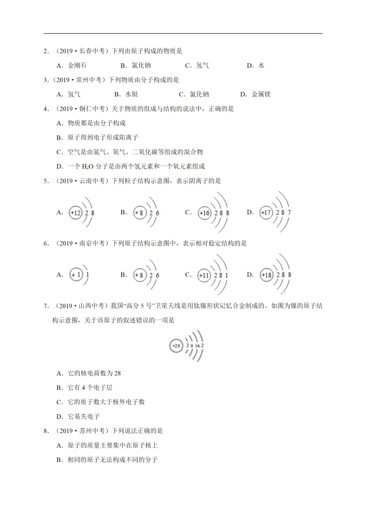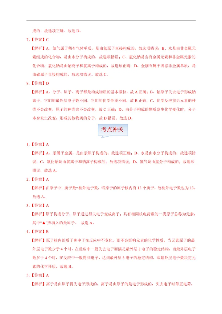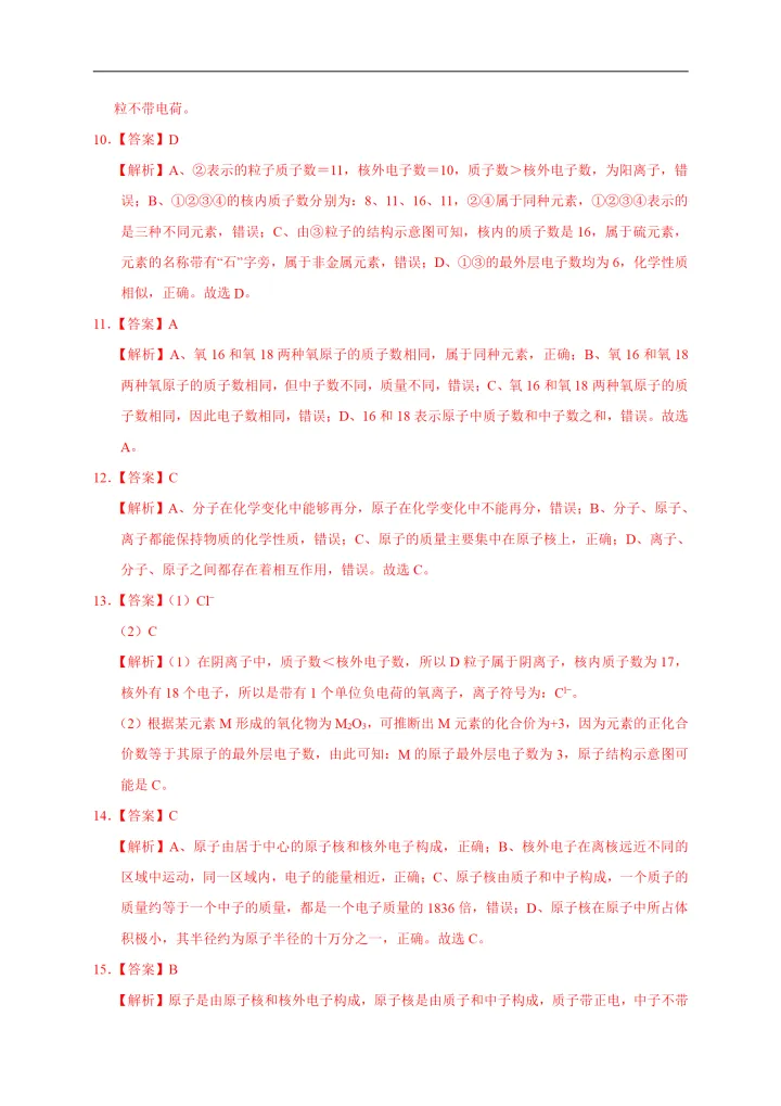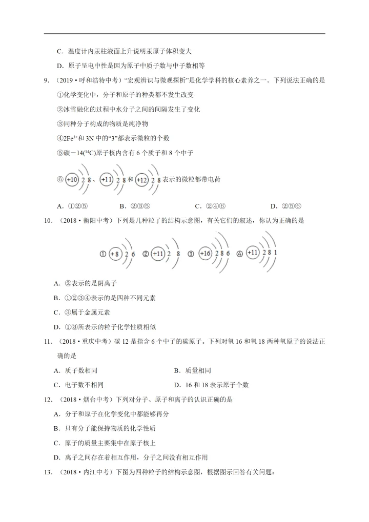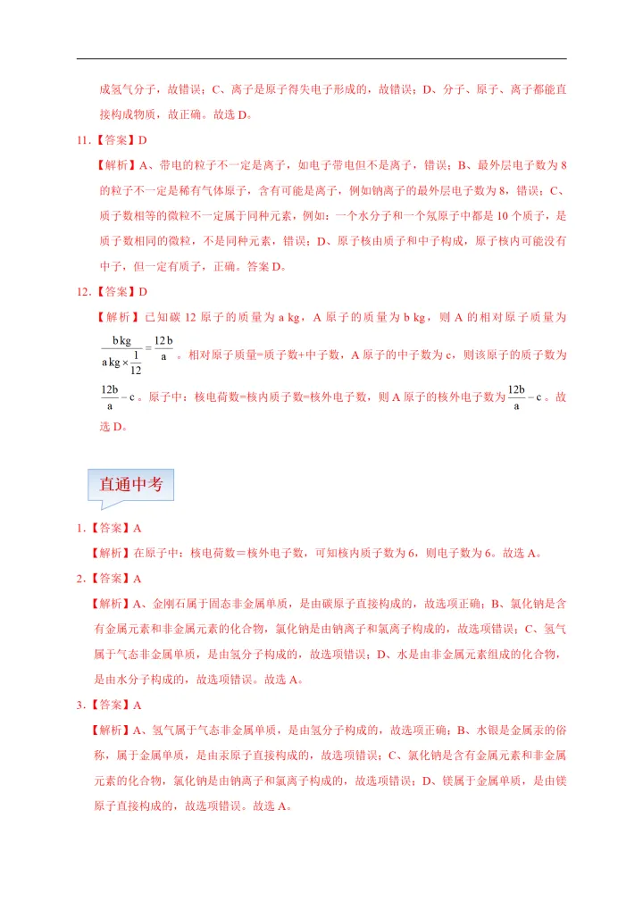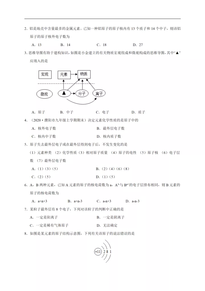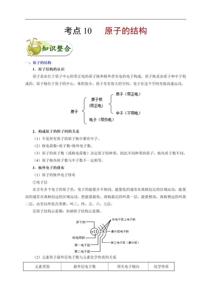 2023年初中化学考点原子的结构
