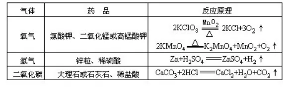 实验室制备氧气、氢气和二氧化碳使用的药品及反应原理