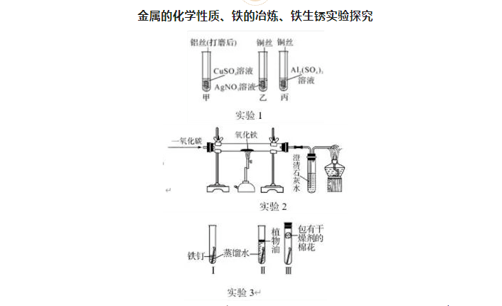 2023年初中化学重点实验:金属的化学性质、铁的冶炼、铁生锈实验探究