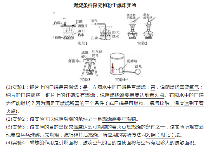 2023年初中化学重点实验:燃烧条件探究和粉尘爆炸实验
