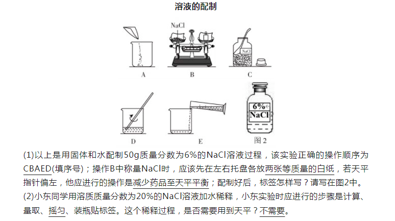 2023年初中化学重点实验:溶液的配制