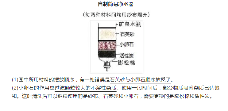 2023年初中化学重点实验:自制简易净水器