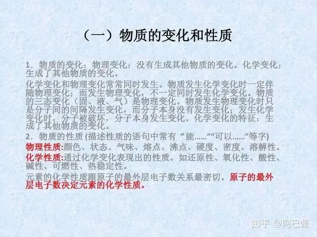 2023年初中化学知识点:物质的变化和性质