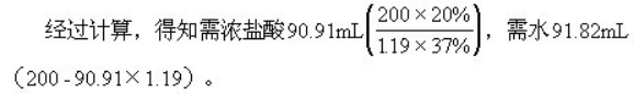 的溶液、测定硝酸钾的溶解度等。做定量实验前,根据要求事先计算出有关数据。例如,用37%(密度为1.19g/cm3)的浓盐酸稀释成200g20%的稀盐酸。首先,要经过计算解决需用多少毫升浓盐酸,多少毫升水。