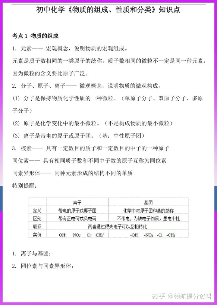 2023年初中九年级化学物质的组成性质和分类知识点