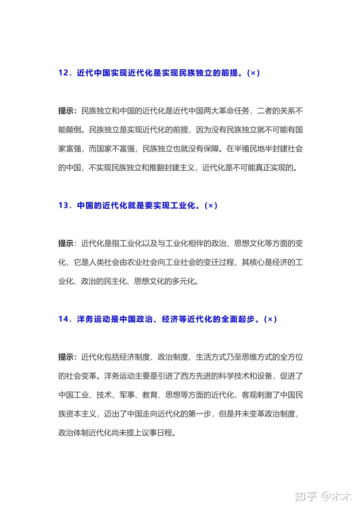 2.近代中国的“半殖民地半封建社会”性质就是政治上是殖民地性质,经济上是封建性质。(×)